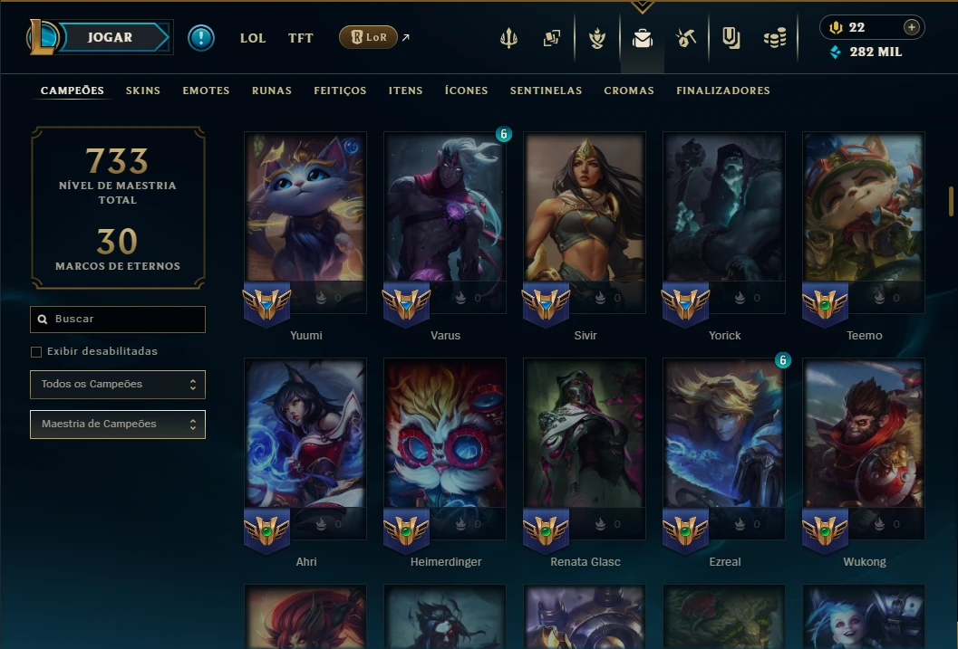 Ouro 1 com TODOS os Champs e 373 Skins ( MONO SUP ) - League of Legends LOL