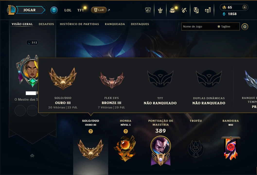 Ouro 3 com 130 Champs e 122 Skins ( MID / JG / TOP ) - League of Legends LOL
