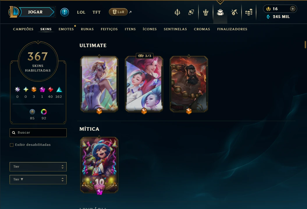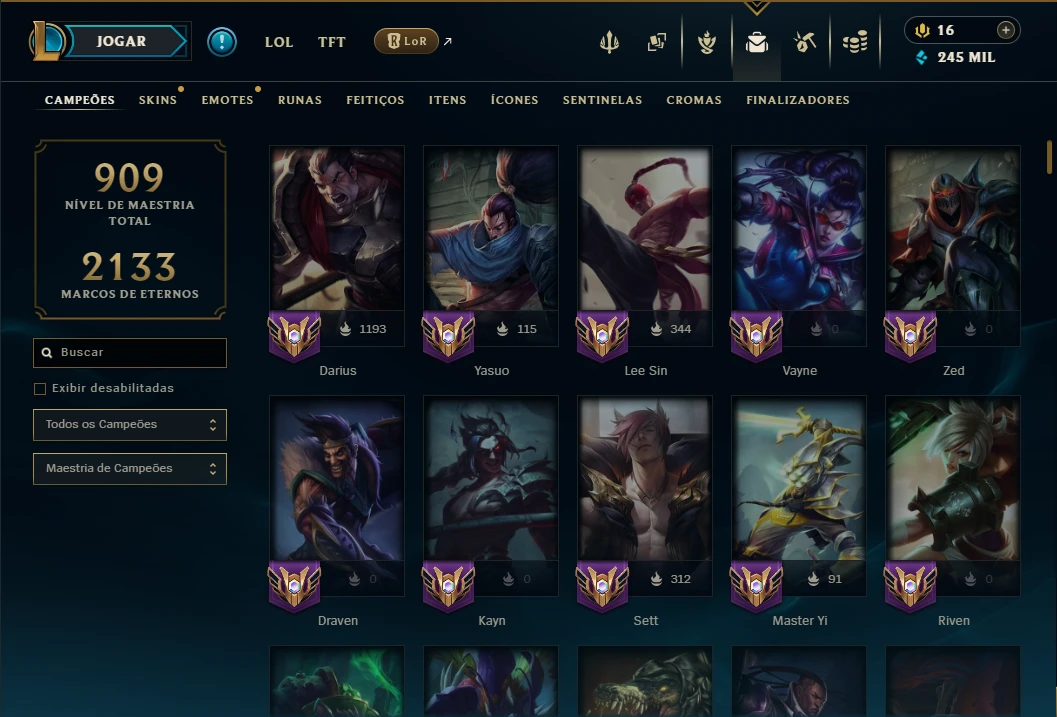 Unranked com TODOS os Champs e 367 Skins ( Nivel 1065 )