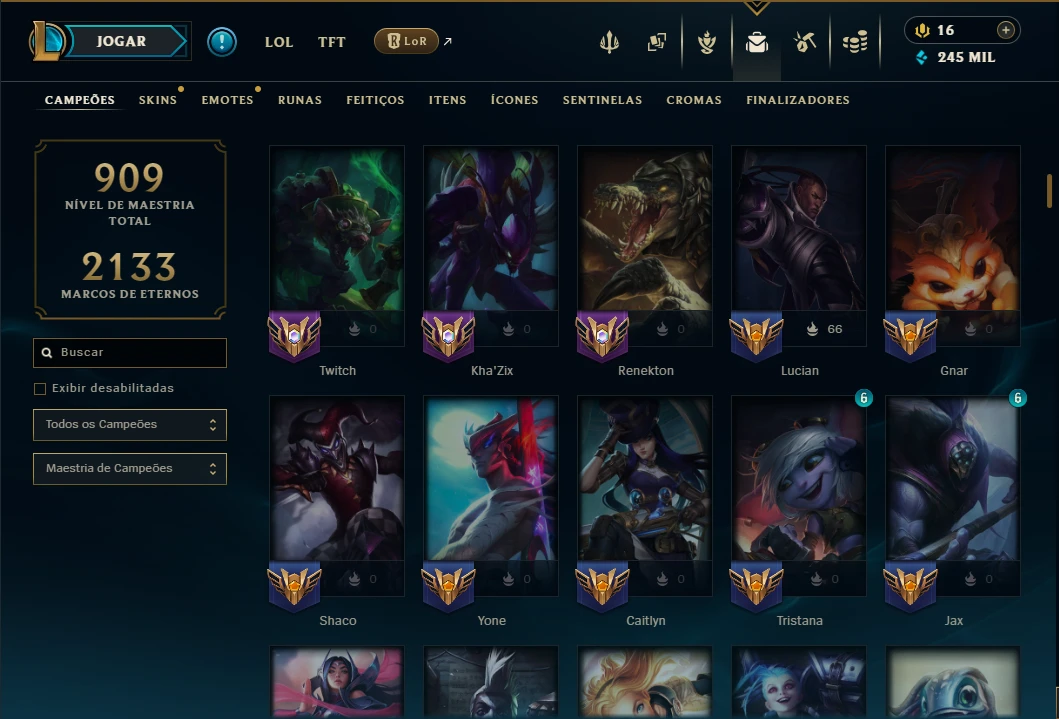 Unranked com TODOS os Champs e 367 Skins ( Nivel 1065 ) - League of Legends LOL