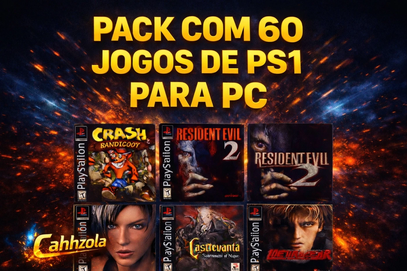 Pack Com 60 Jogos De Ps1 Para Pc – Pronto Pra Jogar! - Outros PACK COM 60 JOGOS DE PS1 PARA PC – PRONTO PRA JOGAR! Relembre os clássicos direto no seu computador, sem precisar de instalação ou emulador! É só abrir e jogar! 👾🔥 ✅ Funciona direto no PC (.EXE) ✅ Sem emulador, sem complicação ✅ Idioma: Multi idioma ✅ Tamanho: 3,5 GB ✅ Roda liso até em PCs fracos 💻 Inclui clássicos como: 🕹️ Crash Bandicoot 🕹️ Resident Evil 🕹️ Tekken 3 🕹️ Final Fantasy VIII 🕹️ Winning Eleven 8 ...e muito mais! São 60 jogos no total! ENTREGA AUTOMÁTICA