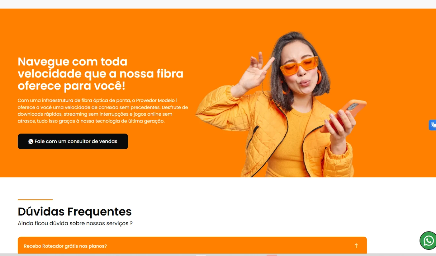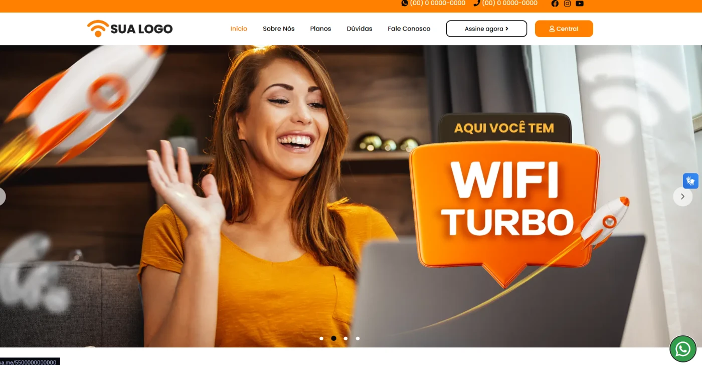Apresente seu negócio de forma moderna e profissional com este Template exclusivo para WordPress e Elementor Pro. Desenvolvido especialmente para o segmento Provedor de Internet, mas com design versátil que se adapta a qualquer ramo de atividade, este template pronto vai ajudar você a ganhar tempo, produtividade e credibilidade online. Com layout clean, responsivo e totalmente editável pelo Elementor Pro, você poderá personalizar cada detalhe de acordo com a identidade da sua marca, sem complicação.
